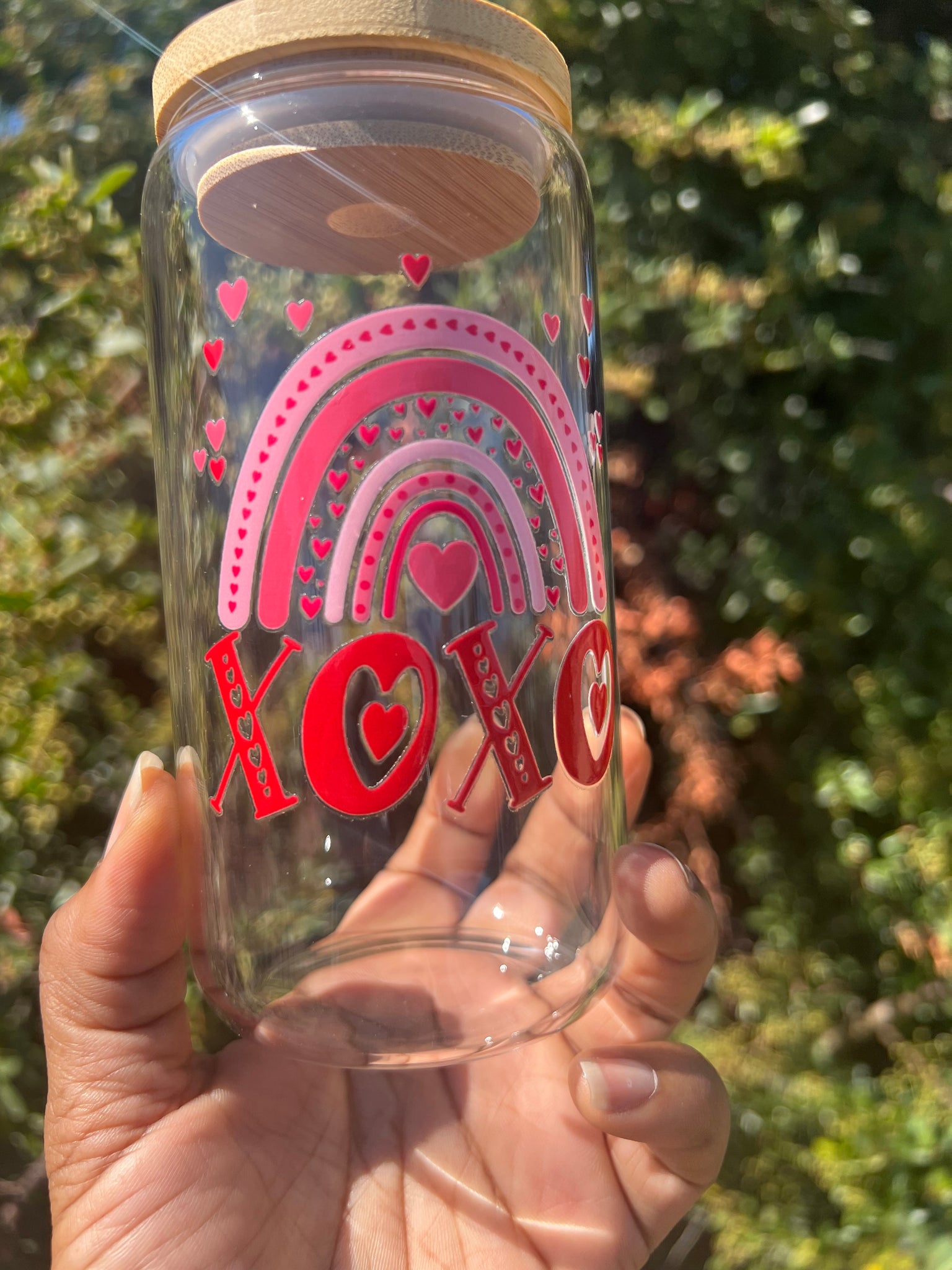 16oz can shaped glass tumbler with glass straw, bamboo lid, cleaning brush. Lead free, BPA free, can potentially withstand temperature difference between -68 degrees ~212 degrees F. Hand wash.